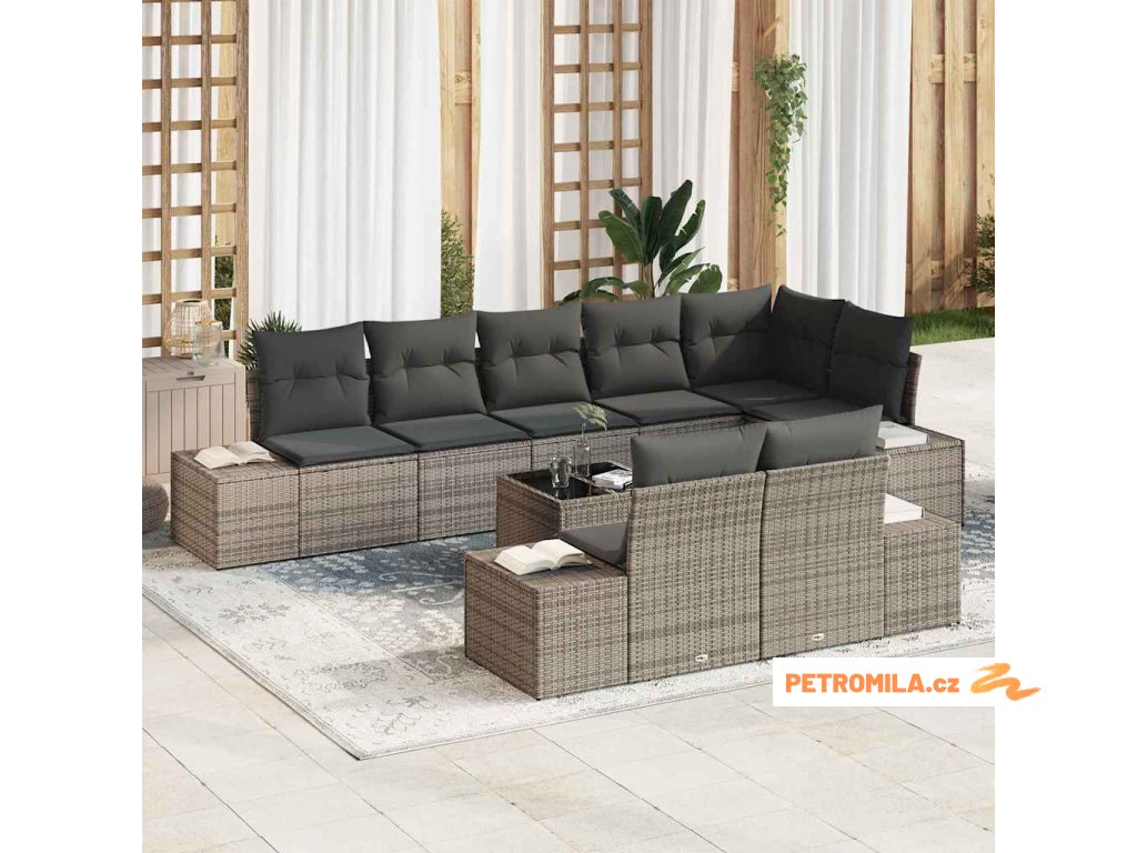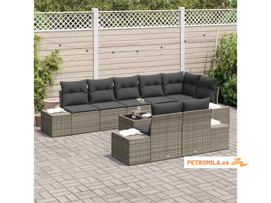 Sada zahradních pohovek s polštářem 9 pcs Šedá polyratan