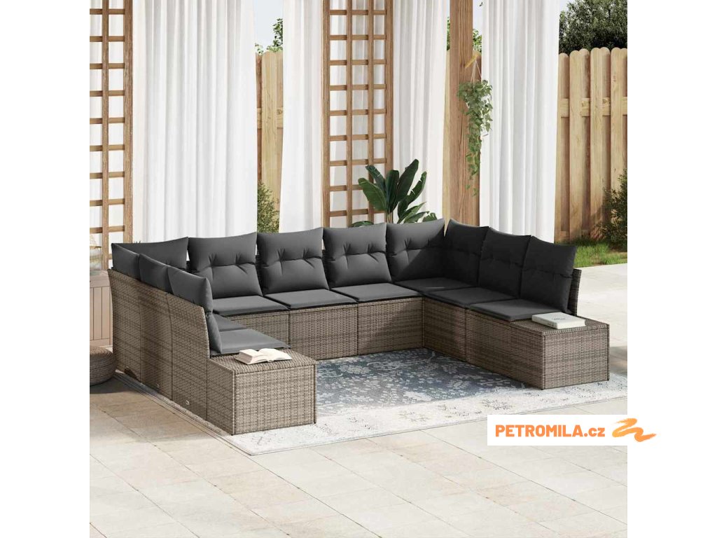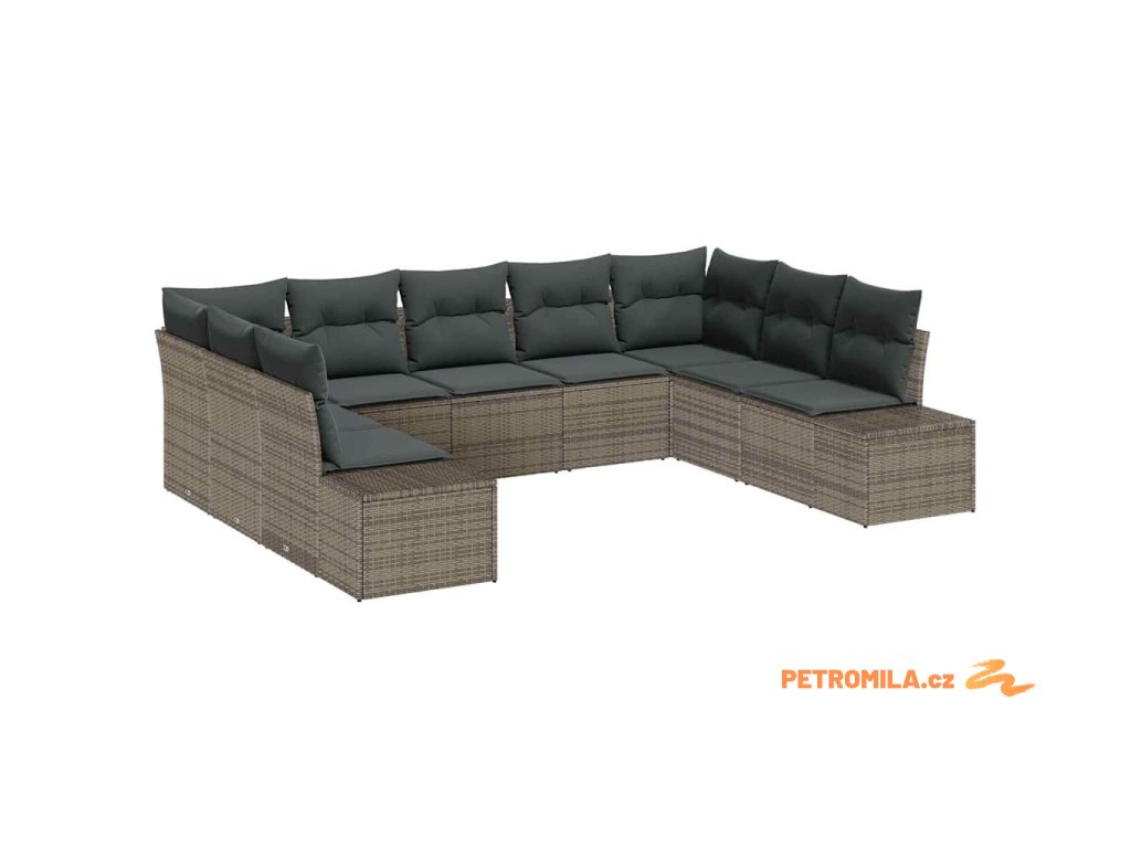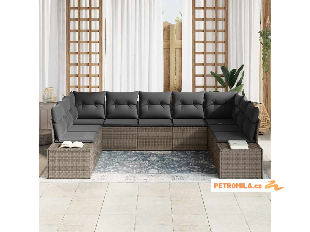 Sada zahradních pohovek s polštářem 9 pcs Šedá polyratan