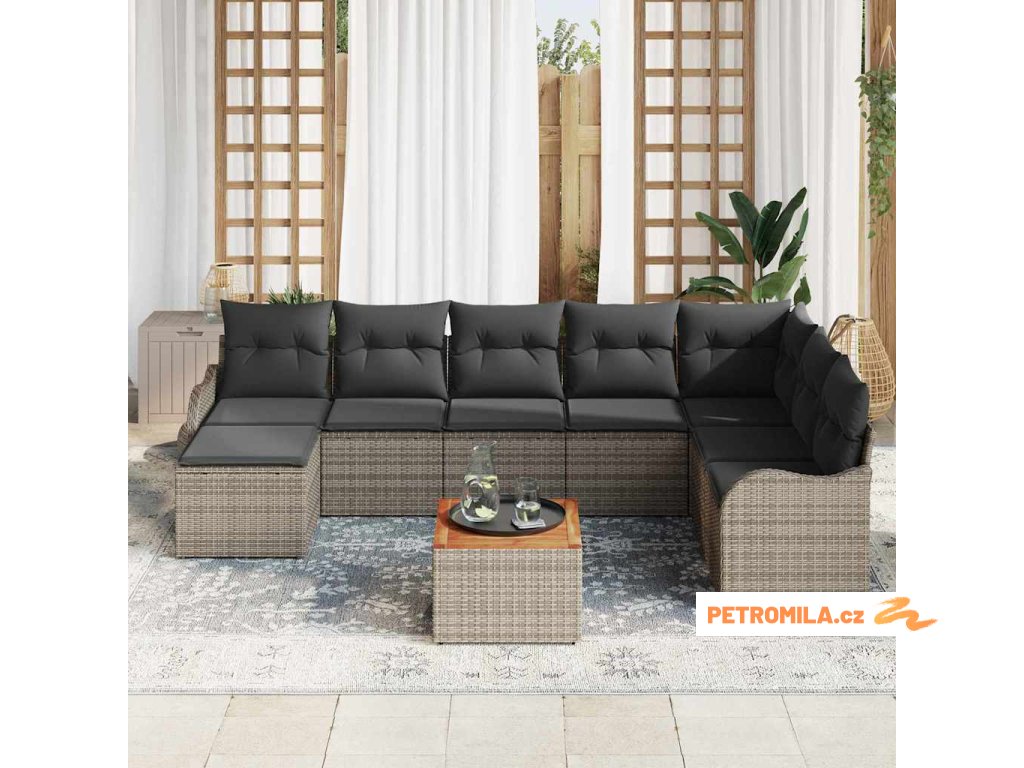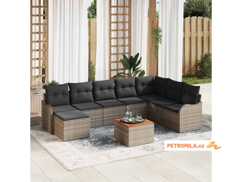 Sada zahradních pohovek s polštářem 9 pcs Šedá polyratan