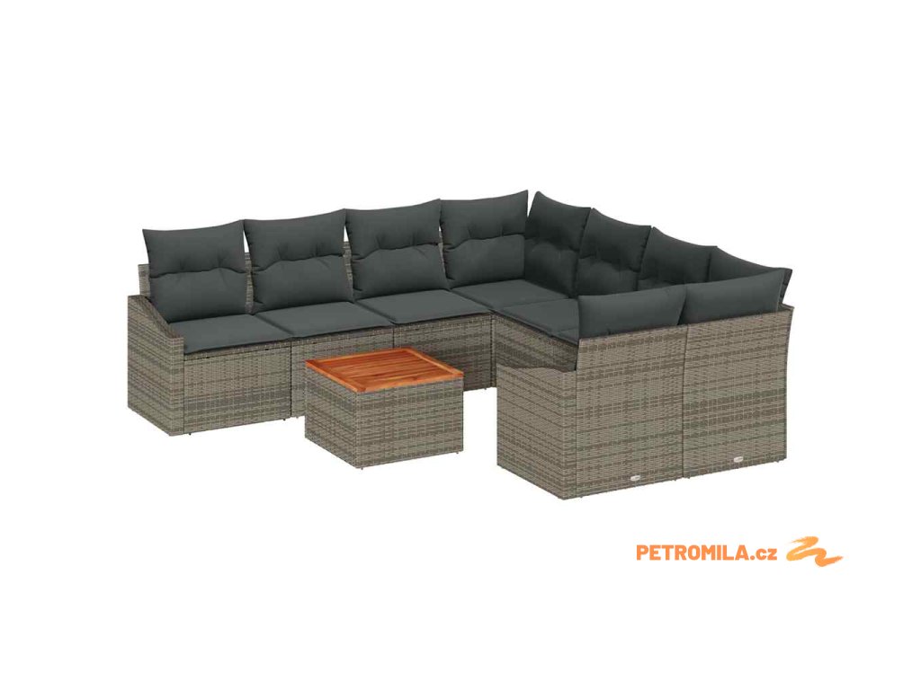 Sada zahradních pohovek s polštářem 9 pcs Šedá polyratan