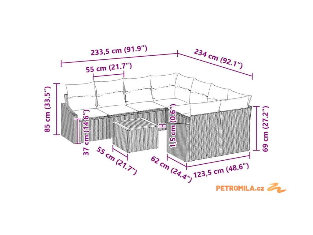 - Údržba & péče: Snadno se udržuje. Stačí ji zakrýt, když ji nepoužíváte, aby si udržela vzhled. Potahy polštářů se snadno čistí, takže zajistí trvalé pohodlí a vzhled.
