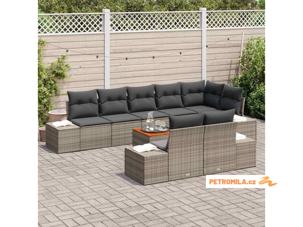 Sada zahradních pohovek s polštářem 9 pcs Šedá polyratan
