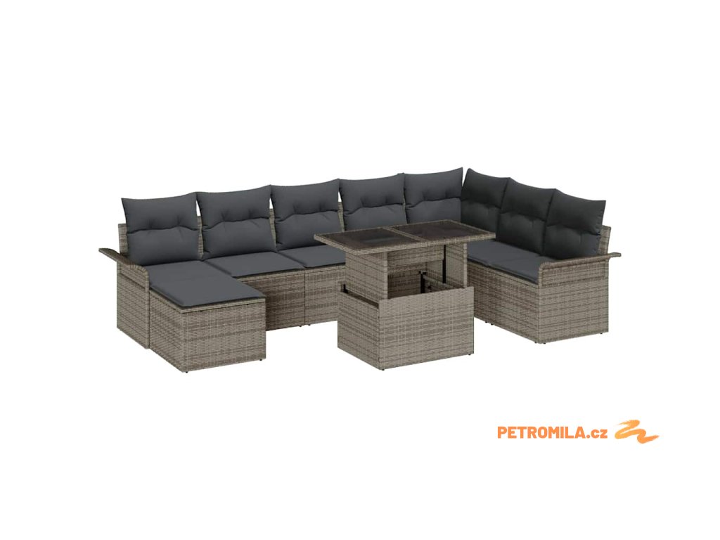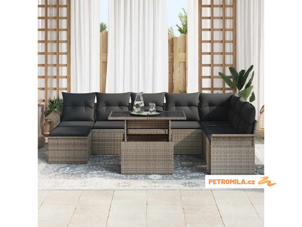 Sada zahradních pohovek s polštářem 9 pcs Šedá polyratan