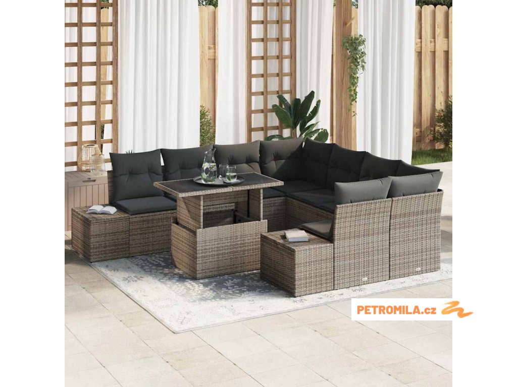 Sada zahradních pohovek s polštářem 9 pcs Šedá polyratan