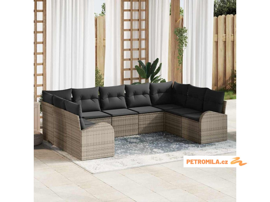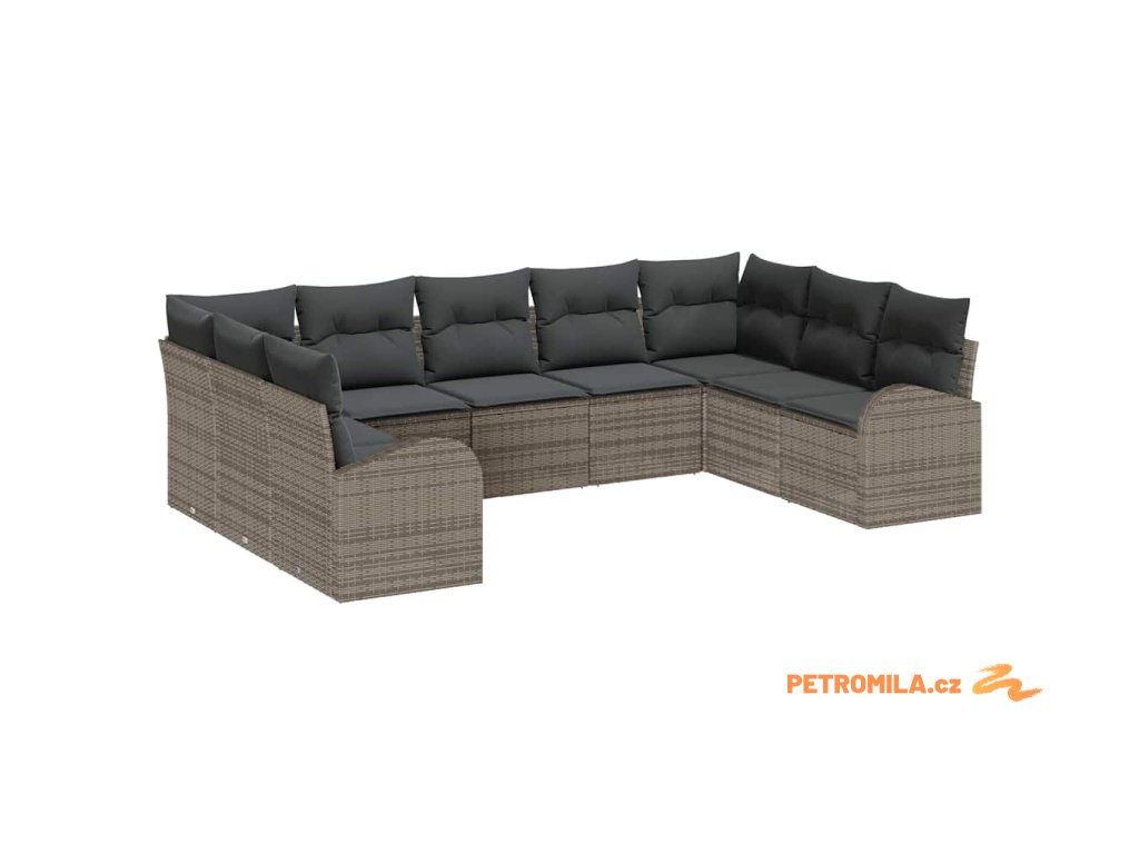 Sada zahradních pohovek s polštářem 9 pcs Šedá polyratan