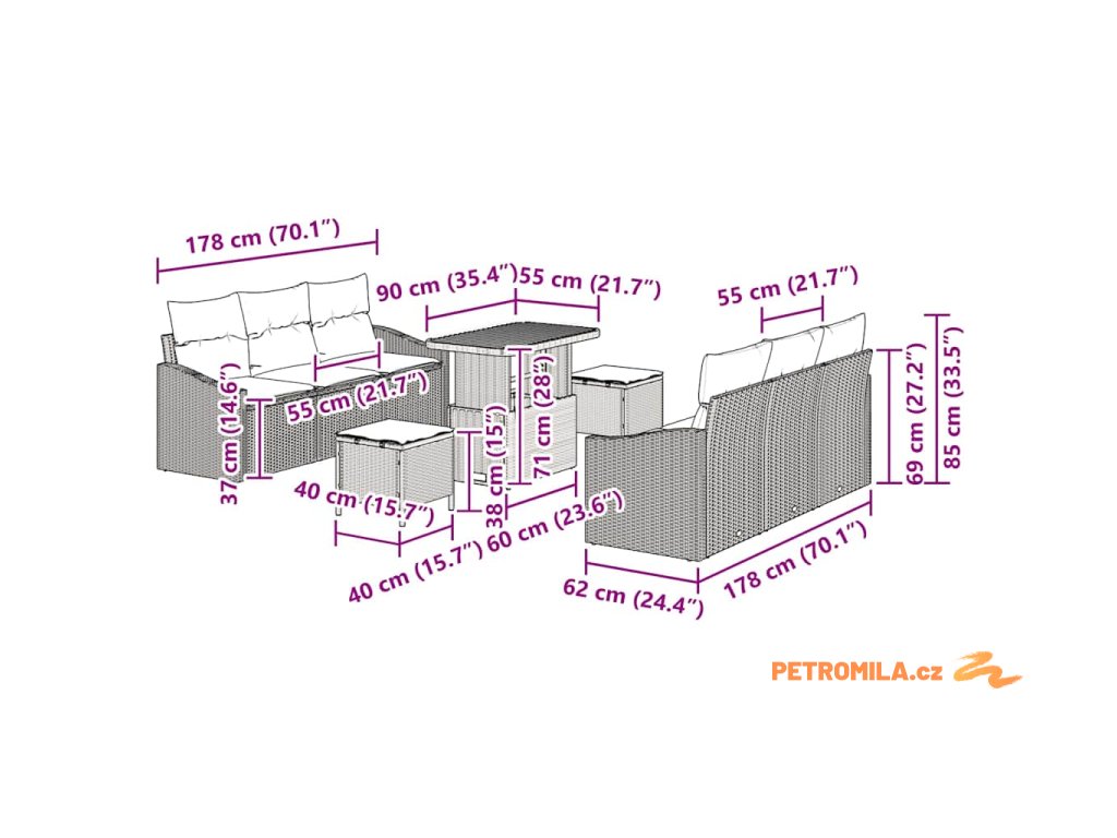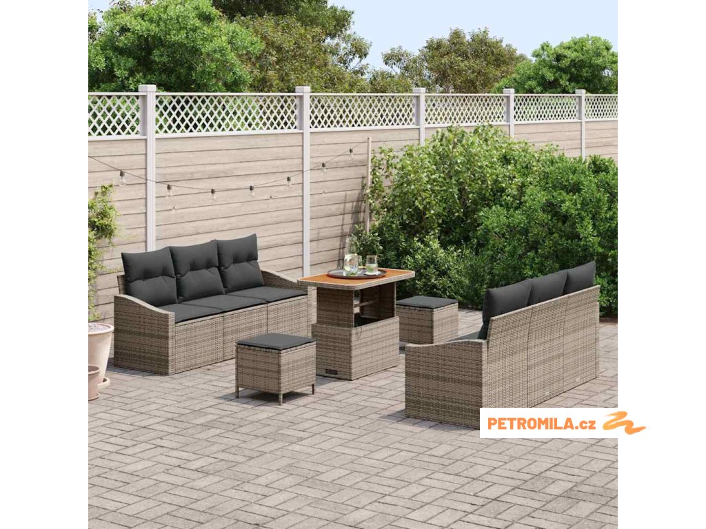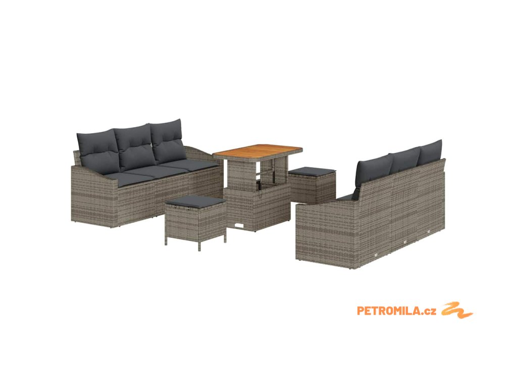Sada zahradních pohovek s polštářem 9 pcs Šedá polyratan