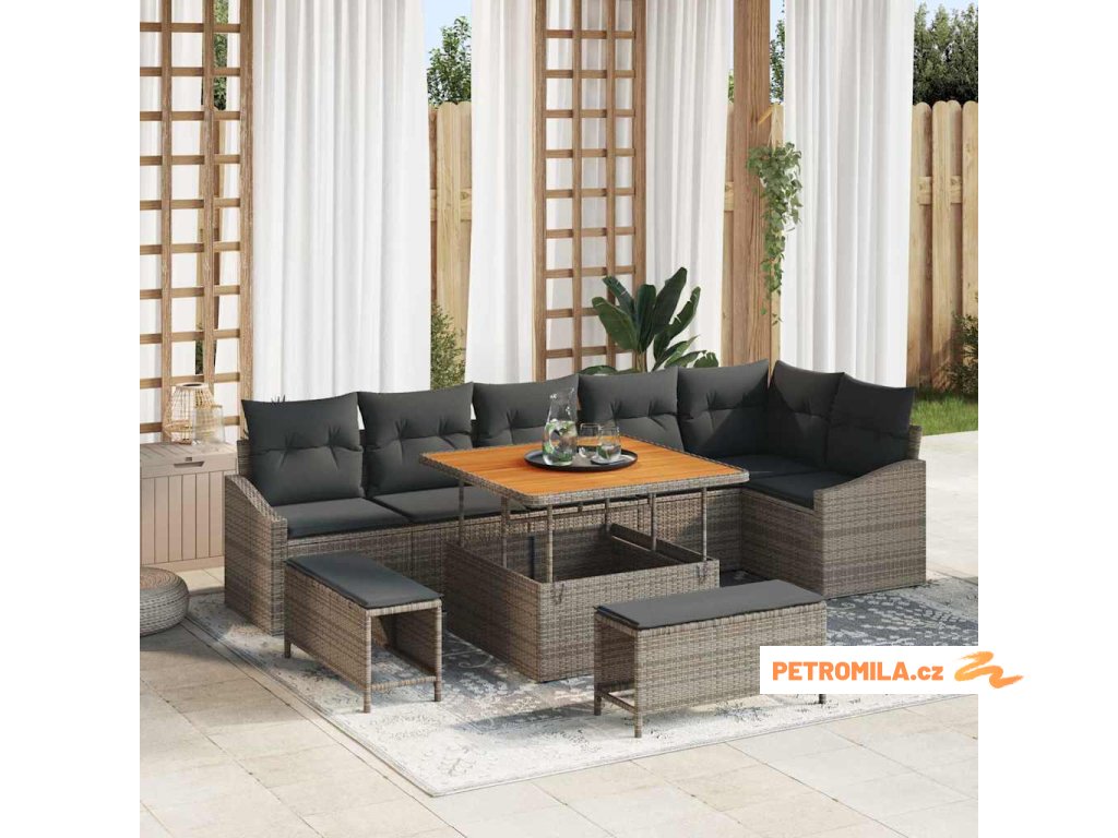 Sada zahradních pohovek s polštářem 9 pcs Šedá polyratan