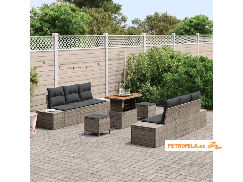 Sada zahradních pohovek s polštářem 9 pcs Šedá polyratan