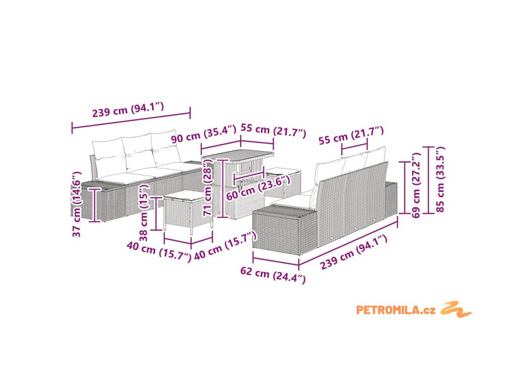 Tento moderní zahradní pohovkový set je navržený tak, aby perfektně doplnil váš venkovní prostor. Je pohodlný a všestranný, ideální do každé moderní zahrady nebo na terasu. S hladkými liniemi a minimálními ozdobami působí klidně a sofistikovaně. Uvolněte se a bavte své hosty ve svojí venkovní oáze s tímto skvělým setem, který je ideální na jaro a léto.