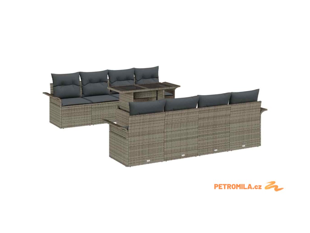 Sada zahradních pohovek s polštářem 9 pcs Šedá polyratan