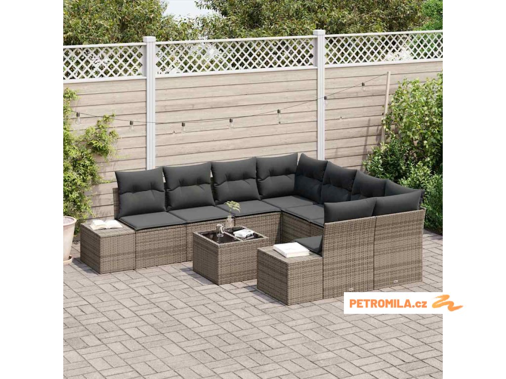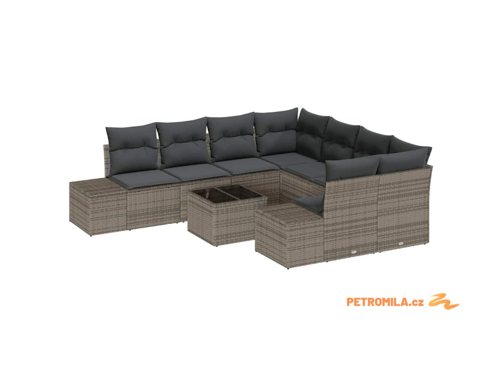 Sada zahradních pohovek s polštářem 9 pcs Šedá polyratan