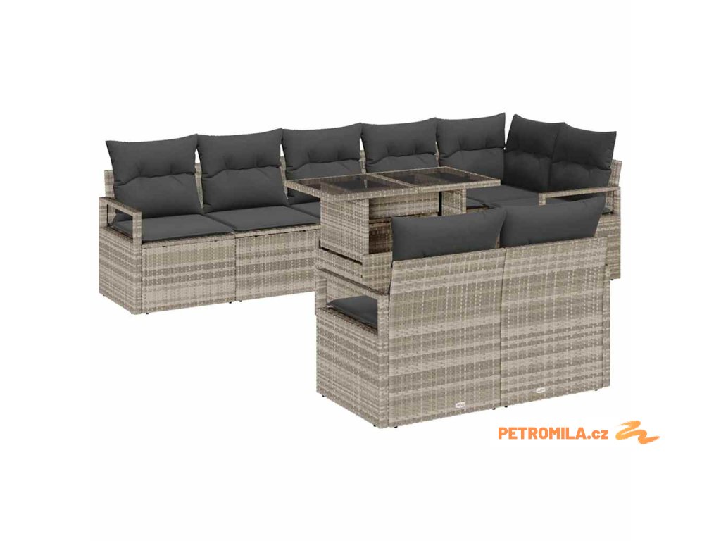 Sada zahradních pohovek s polštářem 9 pcs Světle šedá polyratan