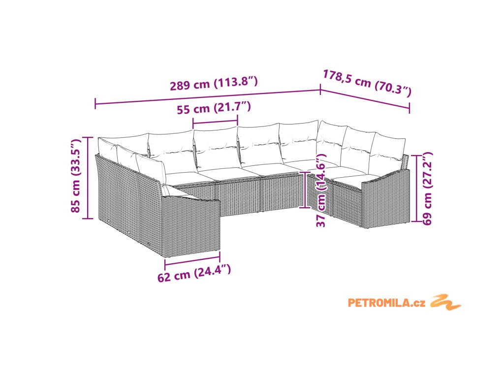 Sada zahradních pohovek s úložištěm 11 pcs Šedá Poly ratan