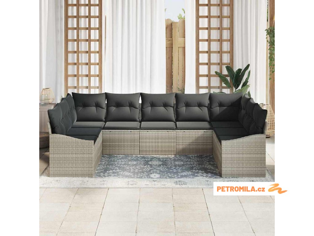 Sada zahradních pohovek s polštářem 9 pcs Světle šedá polyratan