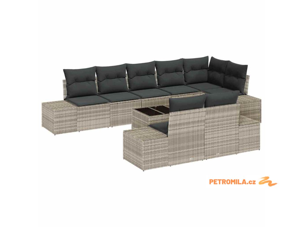 Sada zahradních pohovek s polštářem 9 pcs Světle šedá polyratan