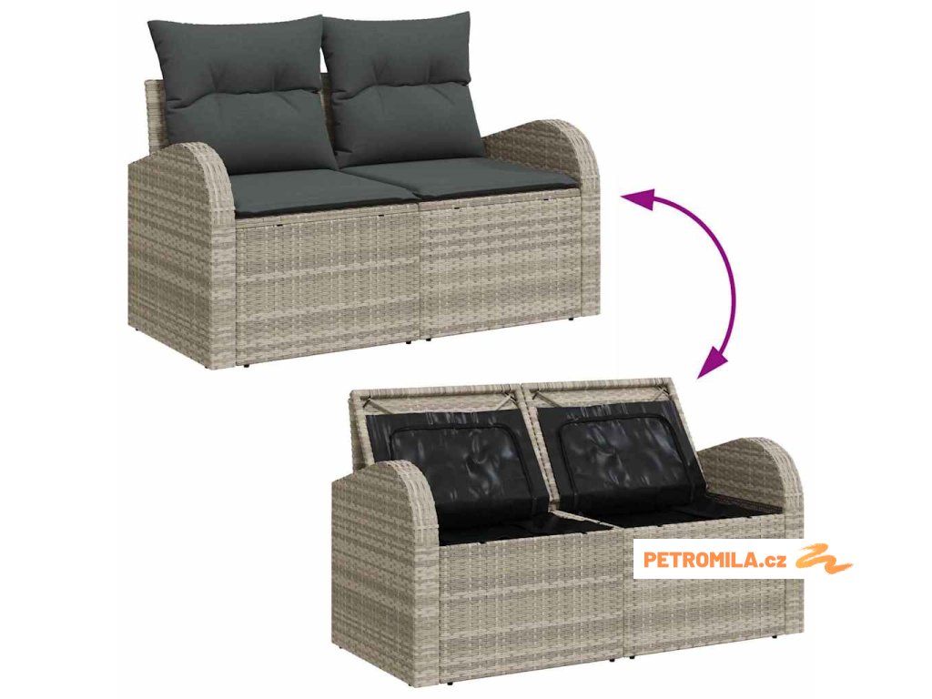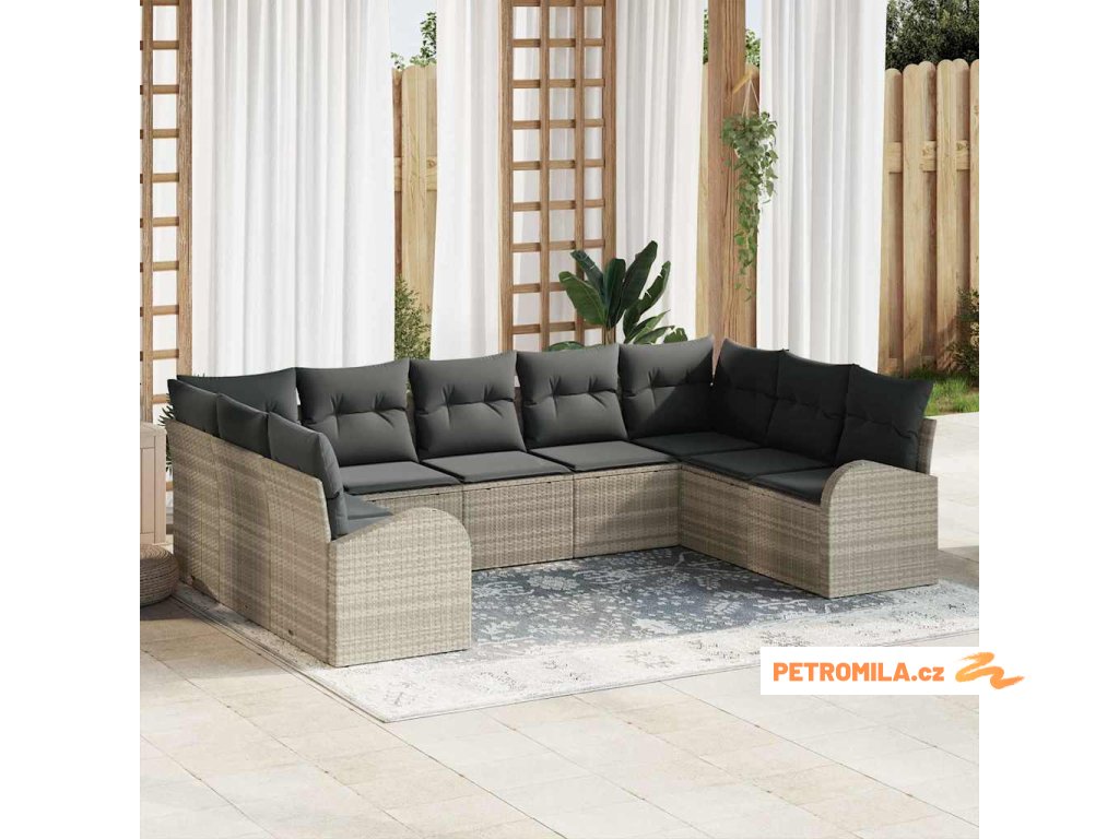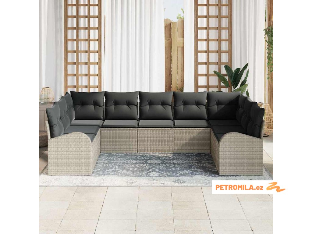 9dílná zahradní sedací souprava a podušky světle šedá polyratan