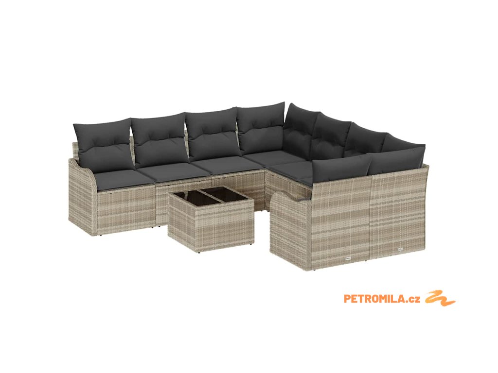 Sada zahradních pohovek s polštářem 9 pcs Světle šedá polyratan