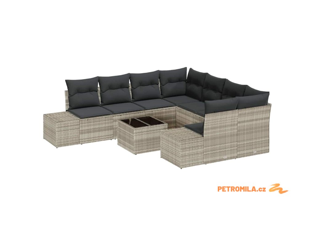 Sada zahradních pohovek s polštářem 9 pcs Světle šedá polyratan