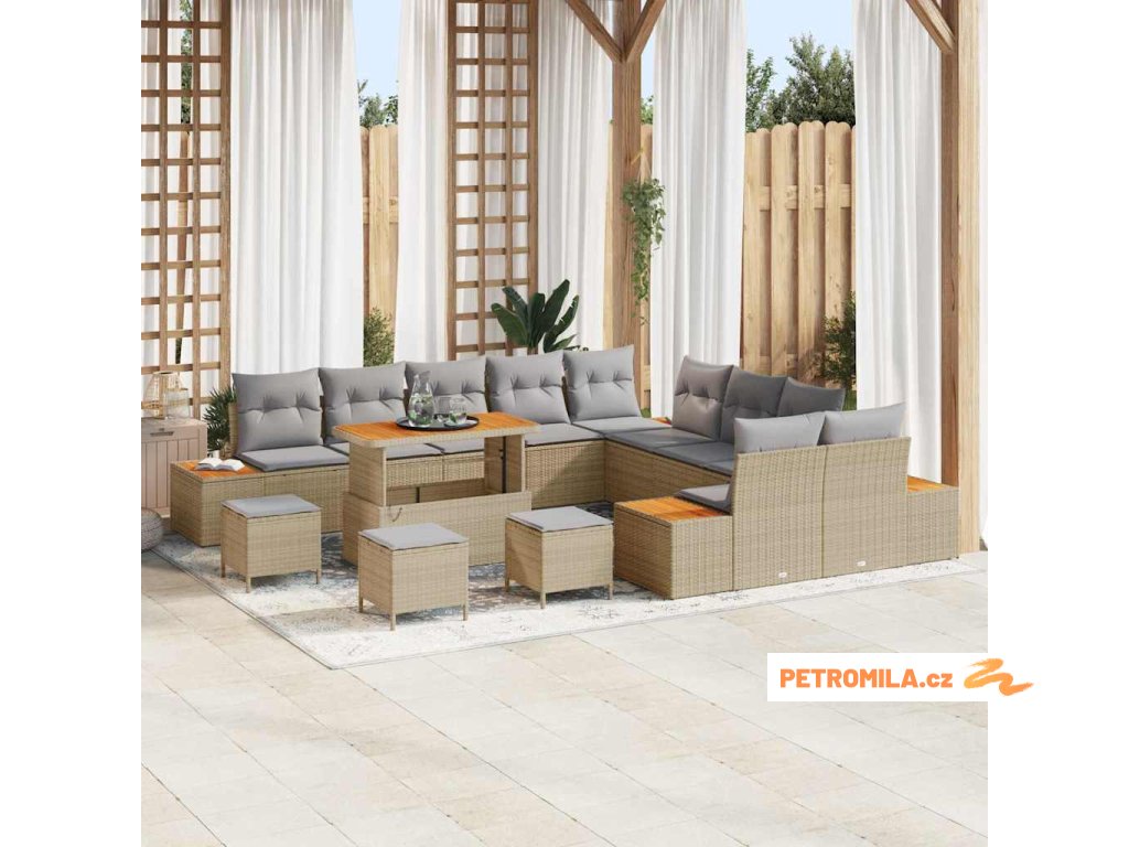 Sada zahradních pohovek s polštářem Béžová Poly ratan