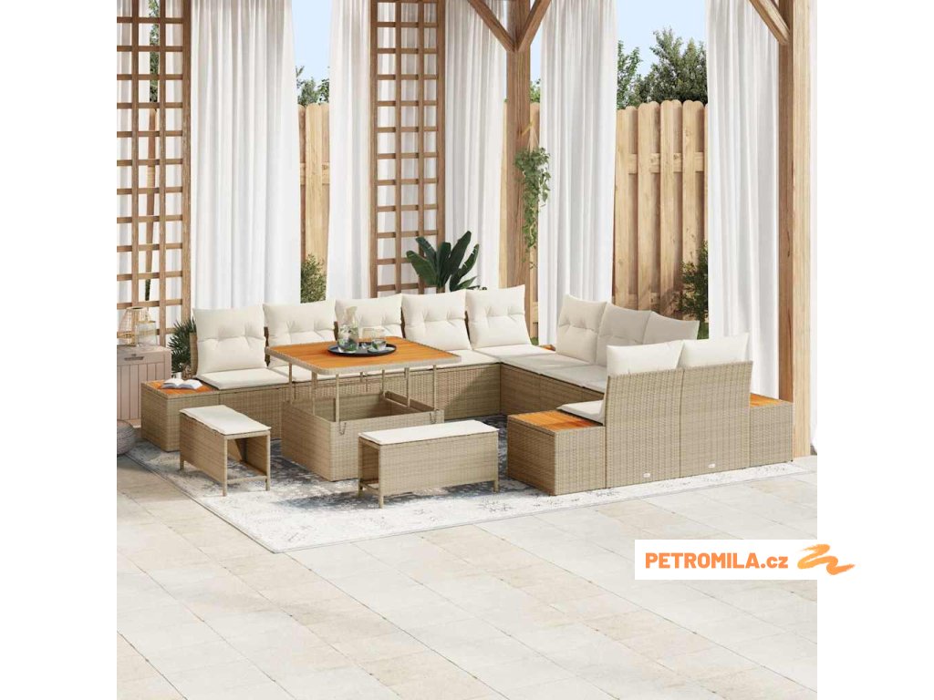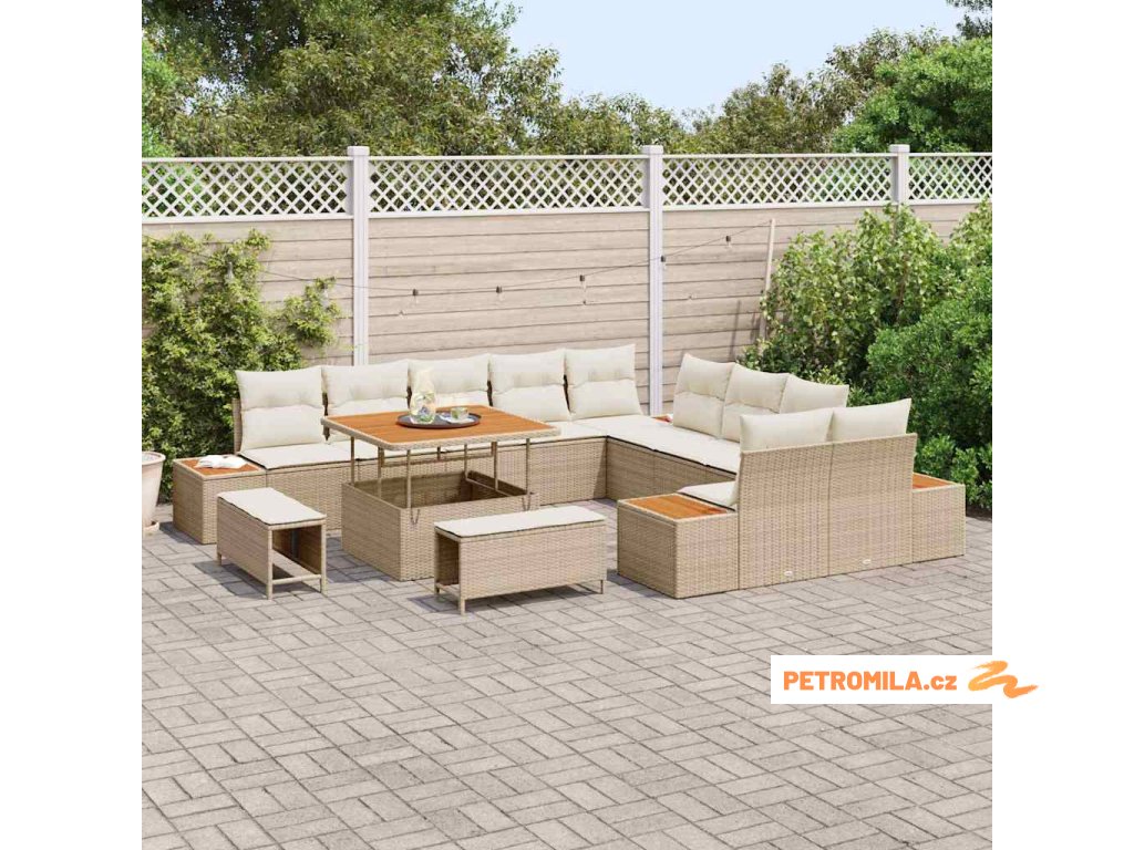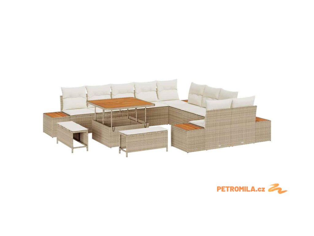 Sada zahradních pohovek s polštářem Béžová Poly ratan