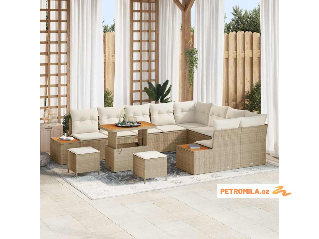 Sada zahradních pohovek s polštářem Béžová Poly ratan