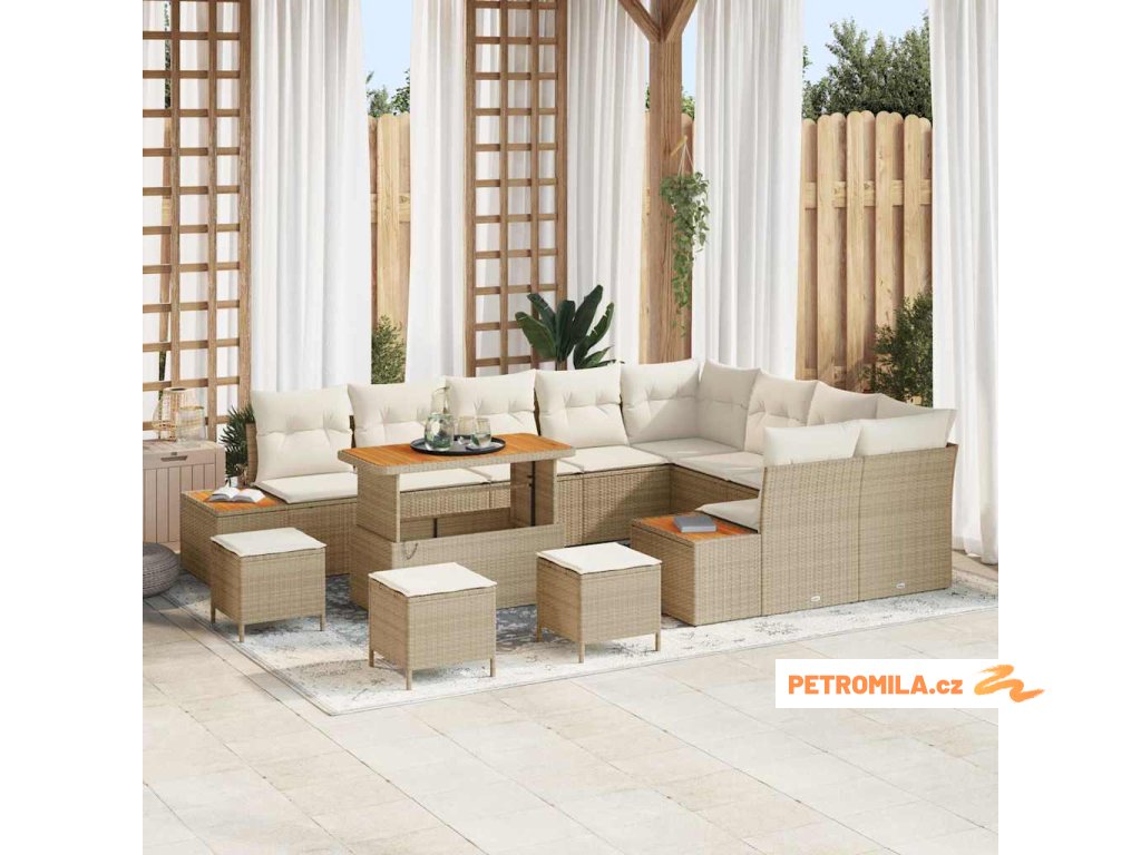 Sada zahradních pohovek s polštářem Béžová Poly ratan