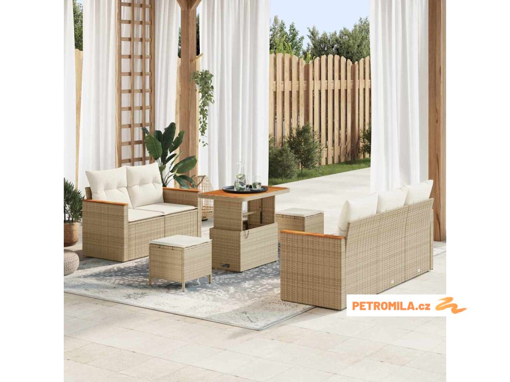 Sada zahradních pohovek s polštářem Béžová Poly ratan