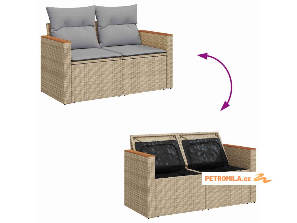 Sada zahradních pohovek s polštářem Béžová Poly ratan
