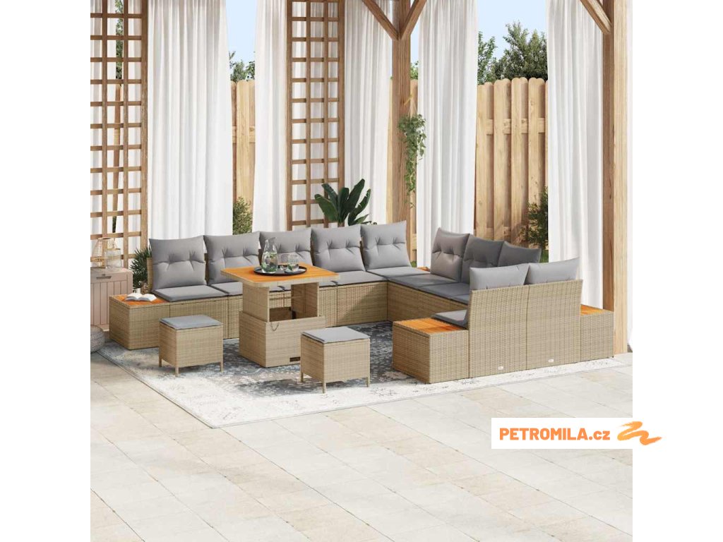 Sada zahradních pohovek s polštářem Béžová Poly ratan