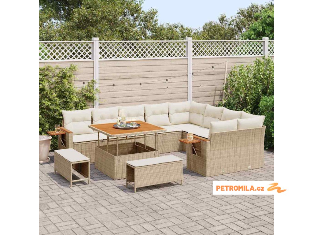 Sada zahradních pohovek s polštářem Béžová Poly ratan