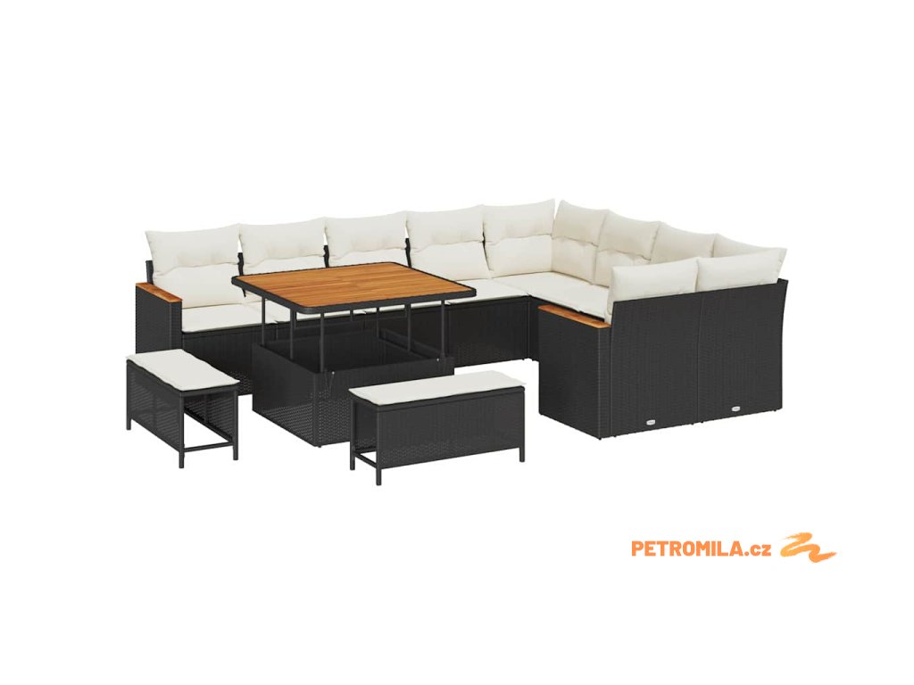 Sada zahradních pohovek s polštářem Černá Poly ratan