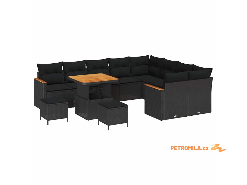 Sada zahradních pohovek s polštářem Černá Poly ratan