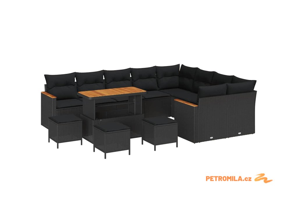 Sada zahradních pohovek s polštářem Černá Poly ratan