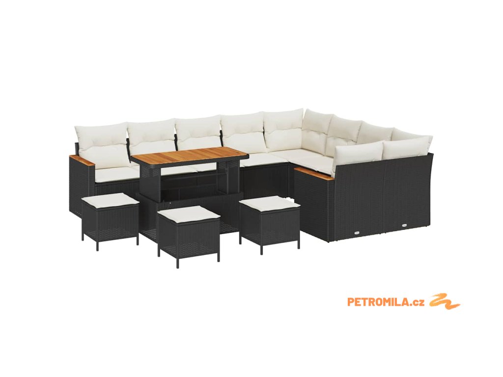 Sada zahradních pohovek s polštářem Černá Poly ratan
