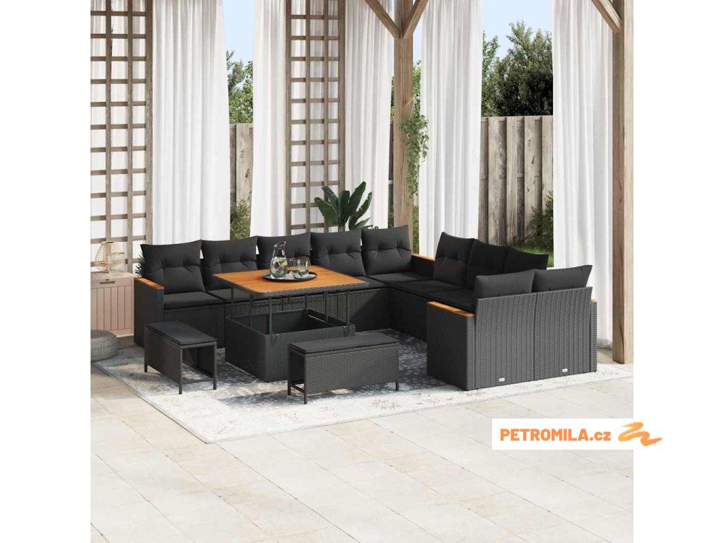 Sada zahradních pohovek s polštářem Černá Poly ratan