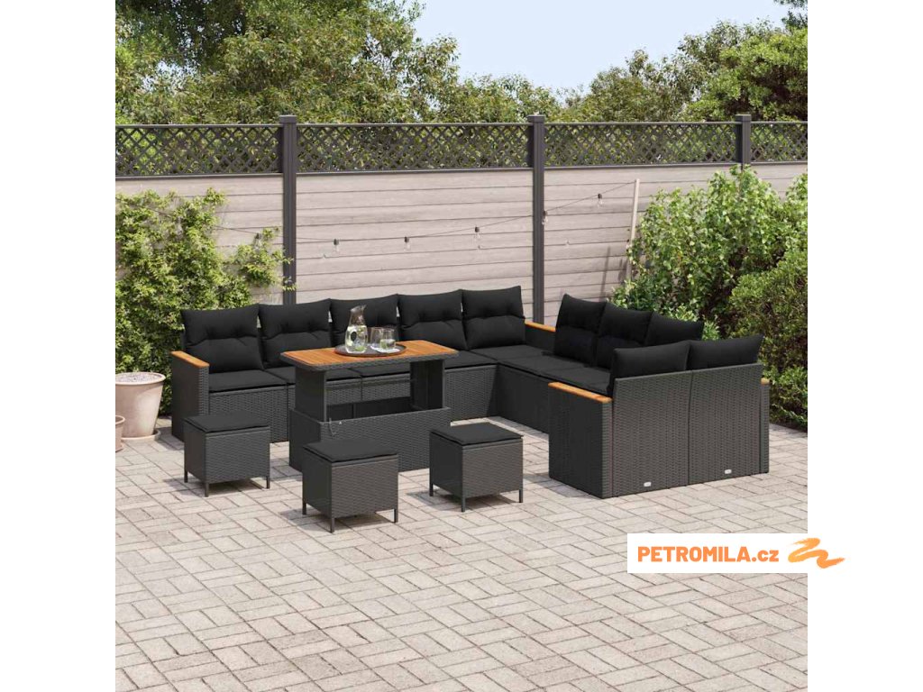 Sada zahradních pohovek s polštářem Černá Poly ratan