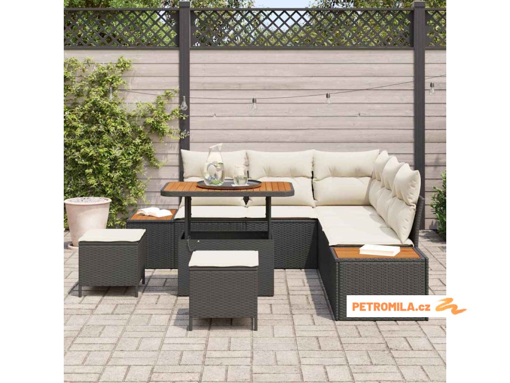 Sada zahradních pohovek s polštářem Černá Poly ratan