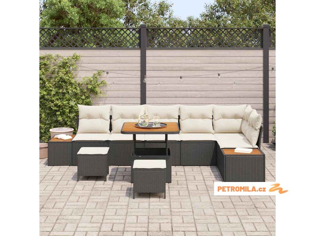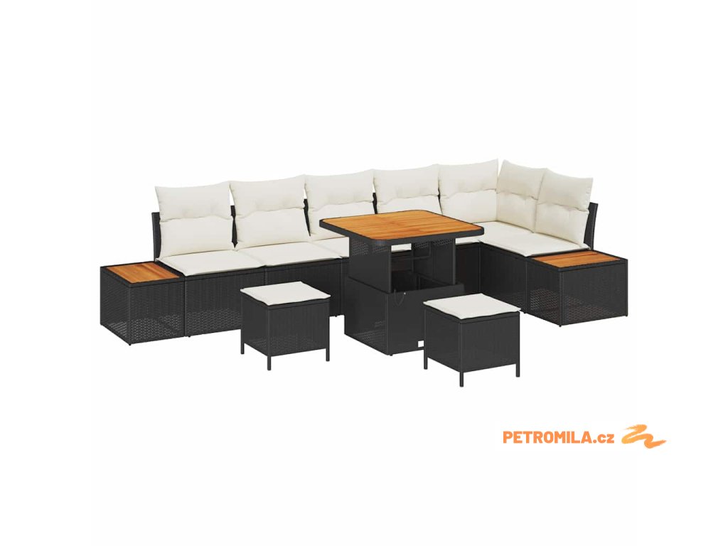Sada zahradních pohovek s polštářem Černá Poly ratan