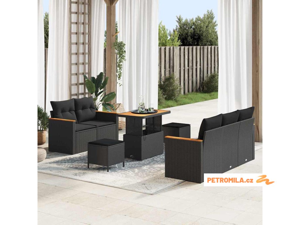 Sada zahradních pohovek s polštářem Černá Poly ratan