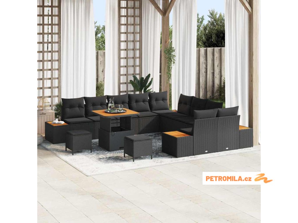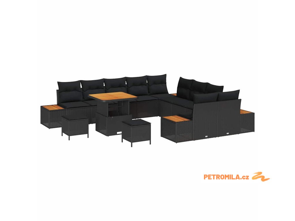 Sada zahradních pohovek s polštářem Černá Poly ratan