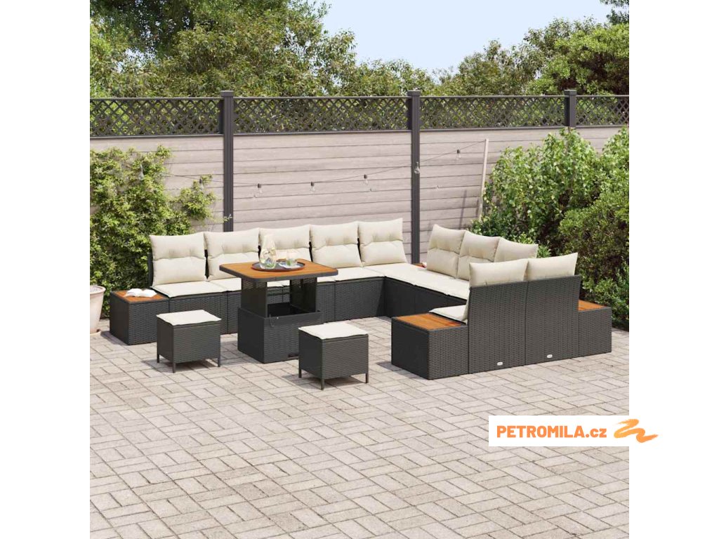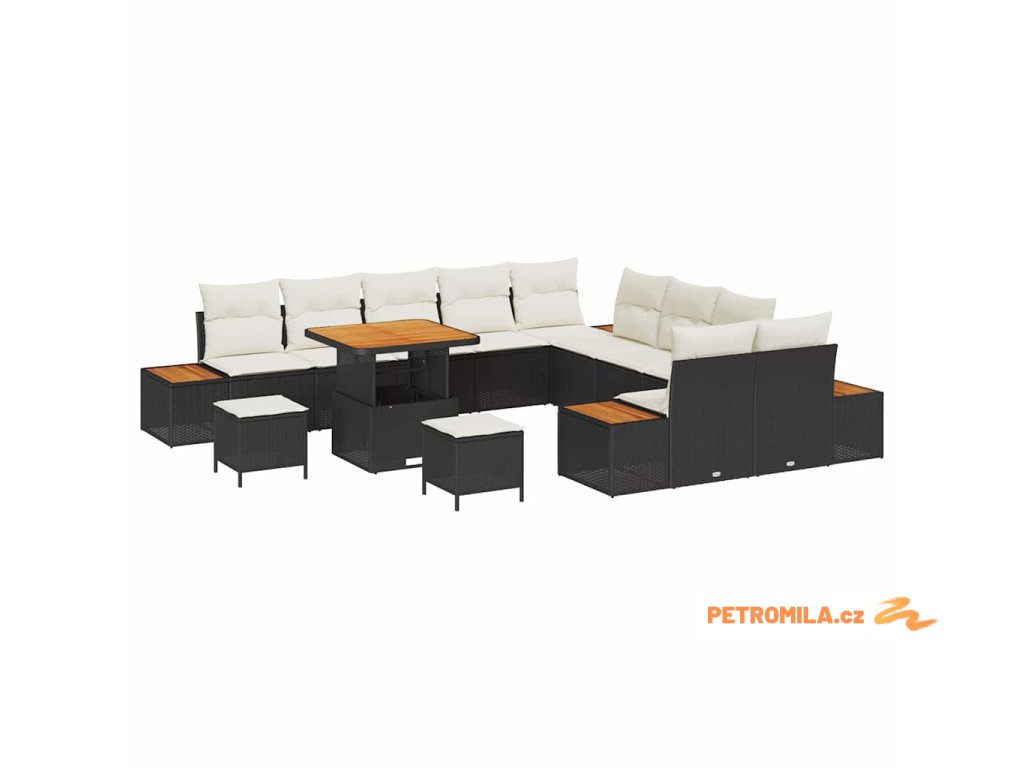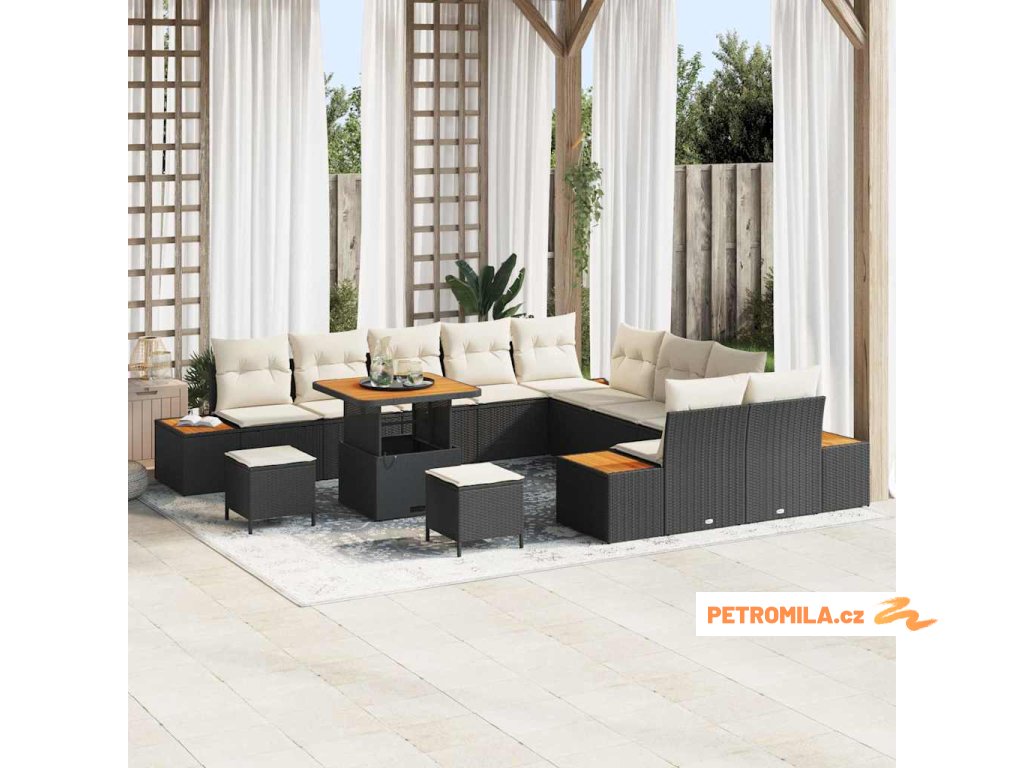 Sada zahradních pohovek s polštářem Černá Poly ratan