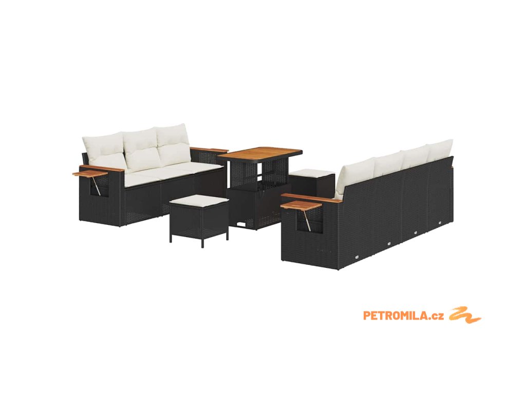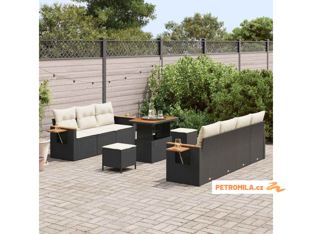 Sada zahradních pohovek s polštářem Černá Poly ratan