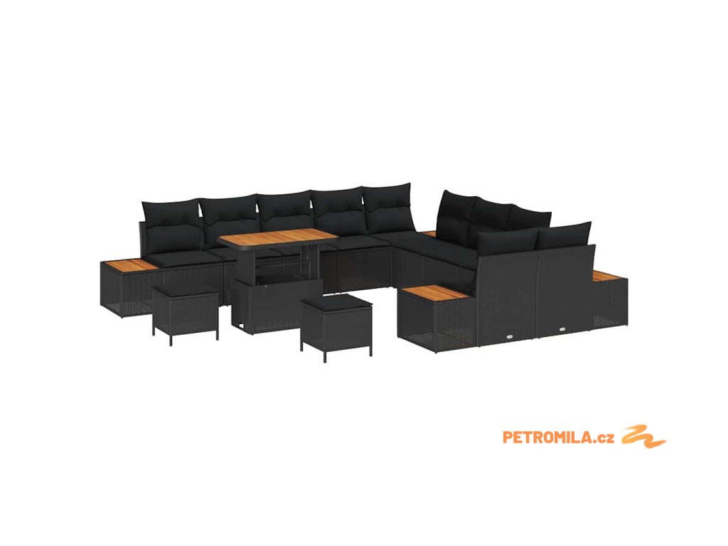 Sada zahradních pohovek s polštářem Černá Poly ratan