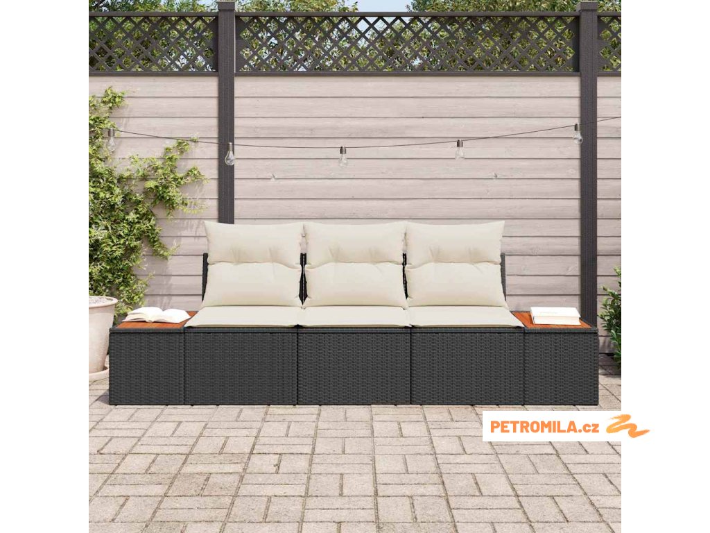 Sada zahradních pohovek s polštářem Černá polyratan