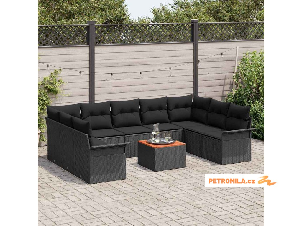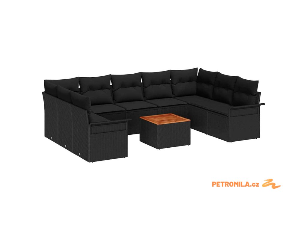 Sada zahradních pohovek s polštářem s úložištěm 10 pcs Černá