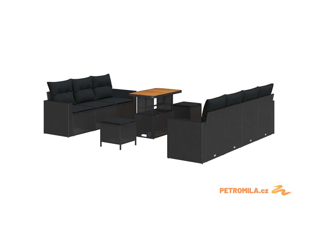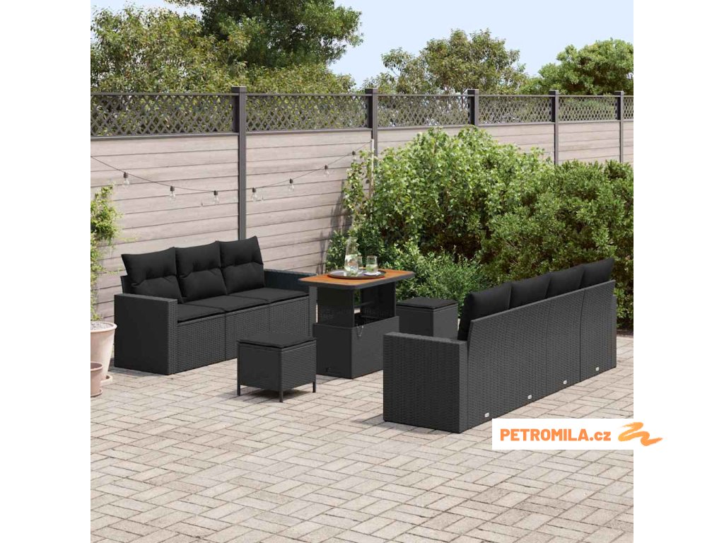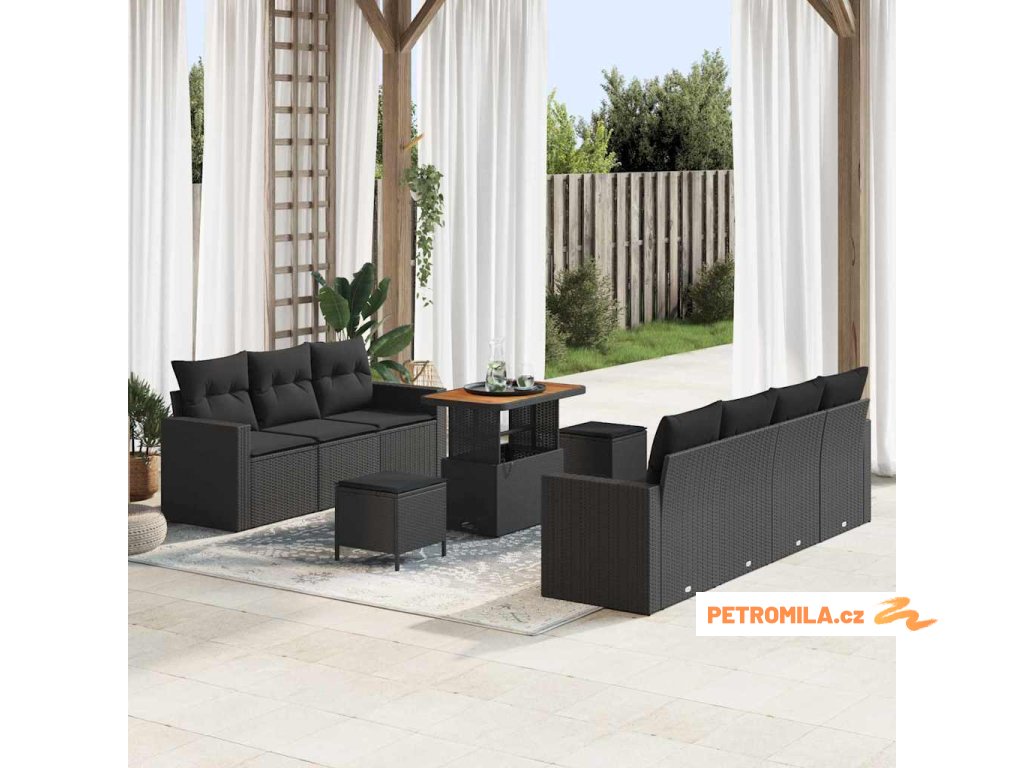 Sada zahradních pohovek s polštářem s úložištěm 10 pcs Černá