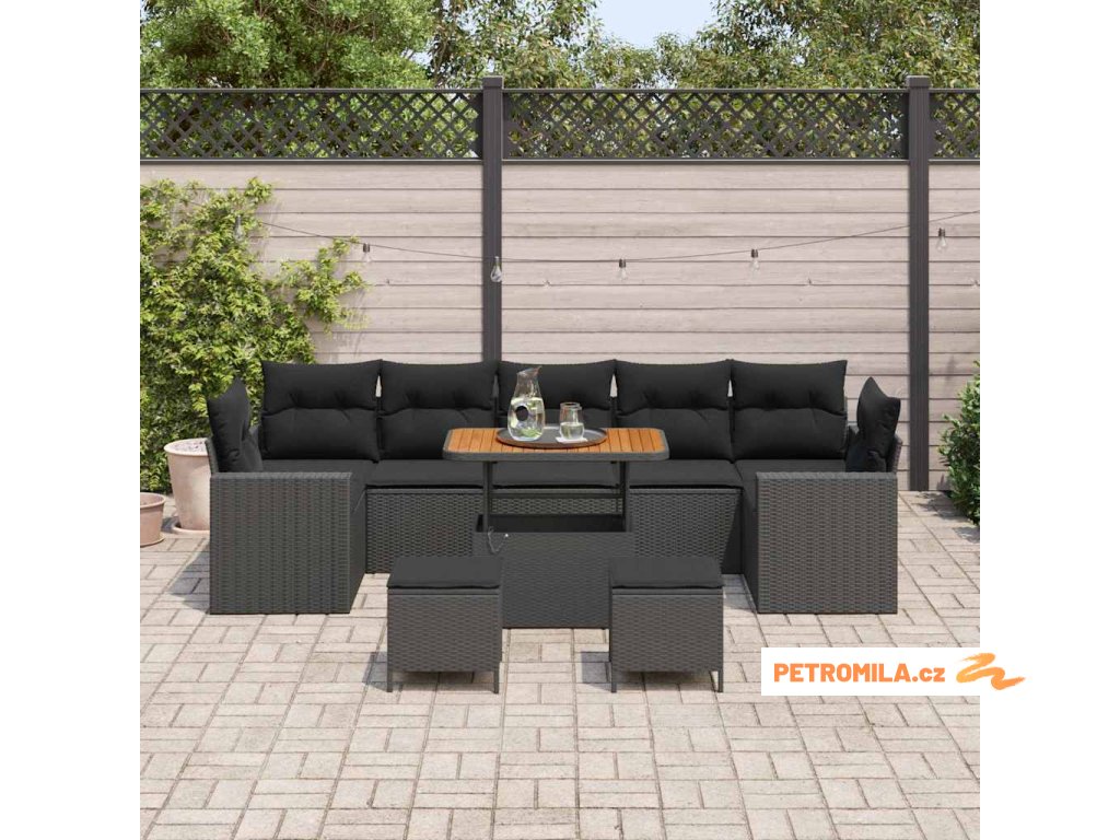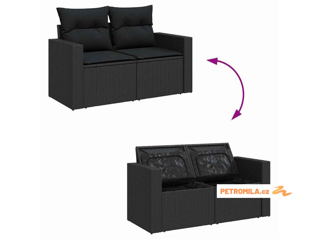 Sada zahradních pohovek s polštářem s úložištěm 10 pcs Černá