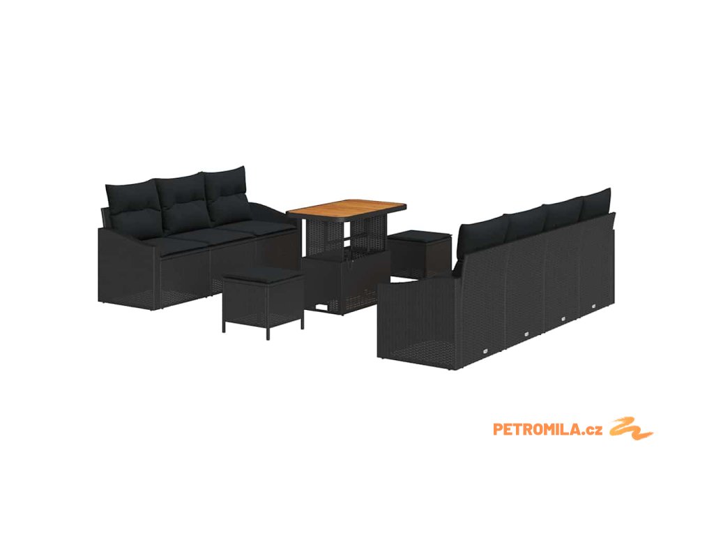 Sada zahradních pohovek s polštářem s úložištěm 10 pcs Černá