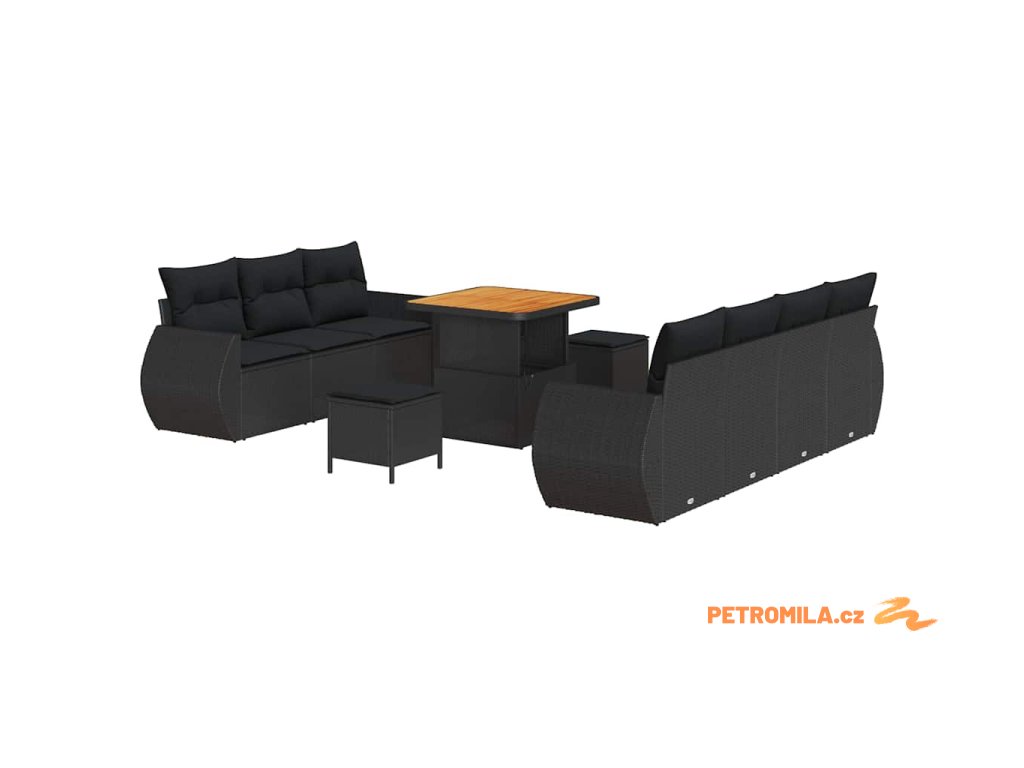 Sada zahradních pohovek s polštářem s úložištěm 10 pcs Černá