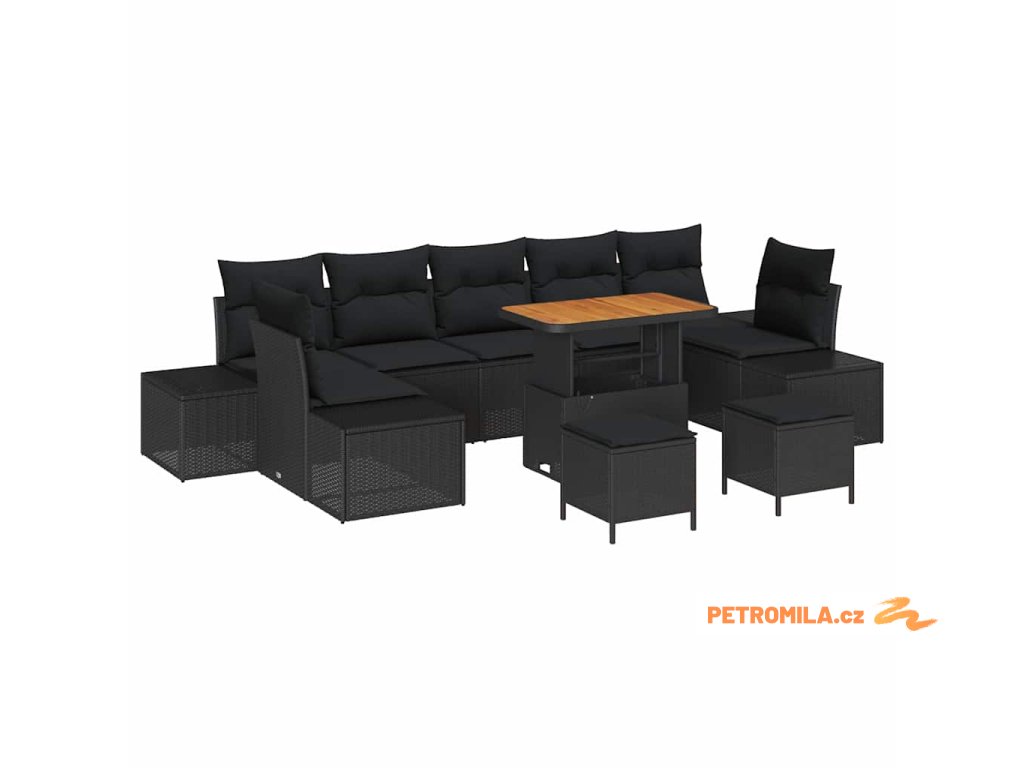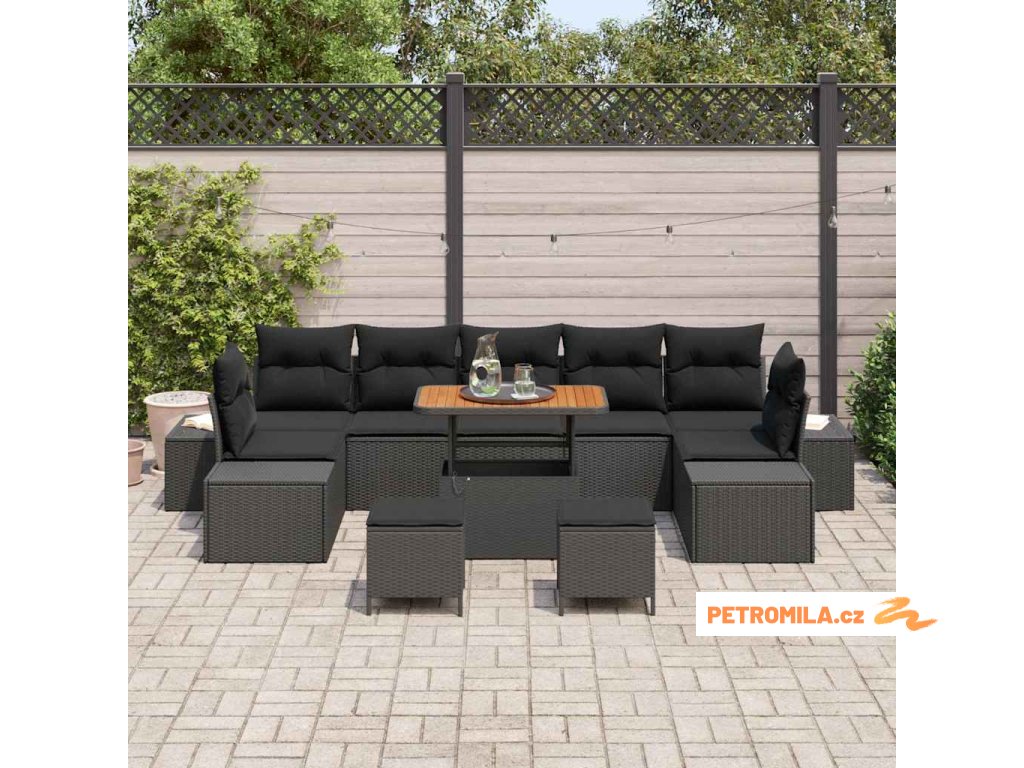 Sada zahradních pohovek s polštářem s úložištěm 10 pcs Černá